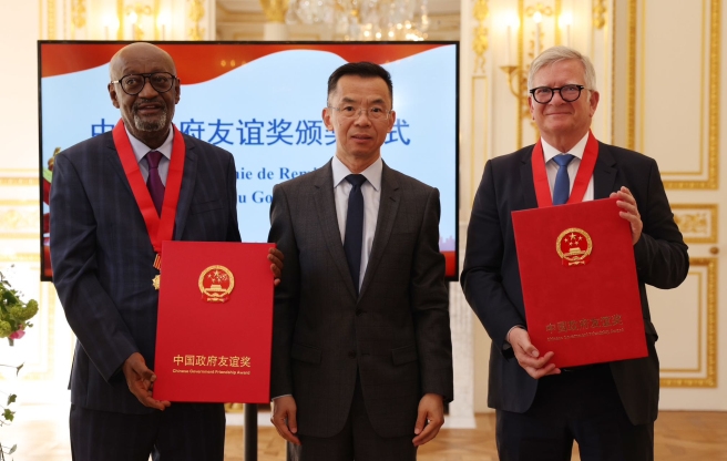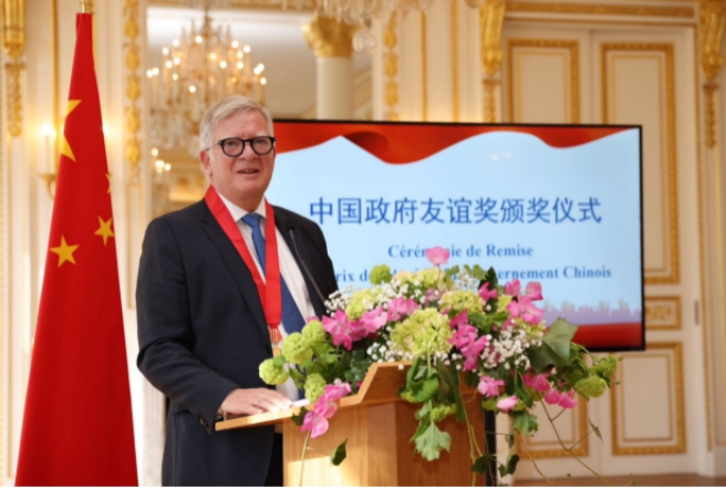 法國巴黎時(shí)間4月19日,中國駐法大使館隆重舉行2022年度中國政府友誼獎(jiǎng)?lì)C獎(jiǎng)儀式。駐法大使盧沙野代表中國政府向藍(lán)星安迪蘇首席執(zhí)行官讓馬克•杜布朗頒發(fā)中國政府友誼獎(jiǎng)獎(jiǎng)?wù)潞妥C書。