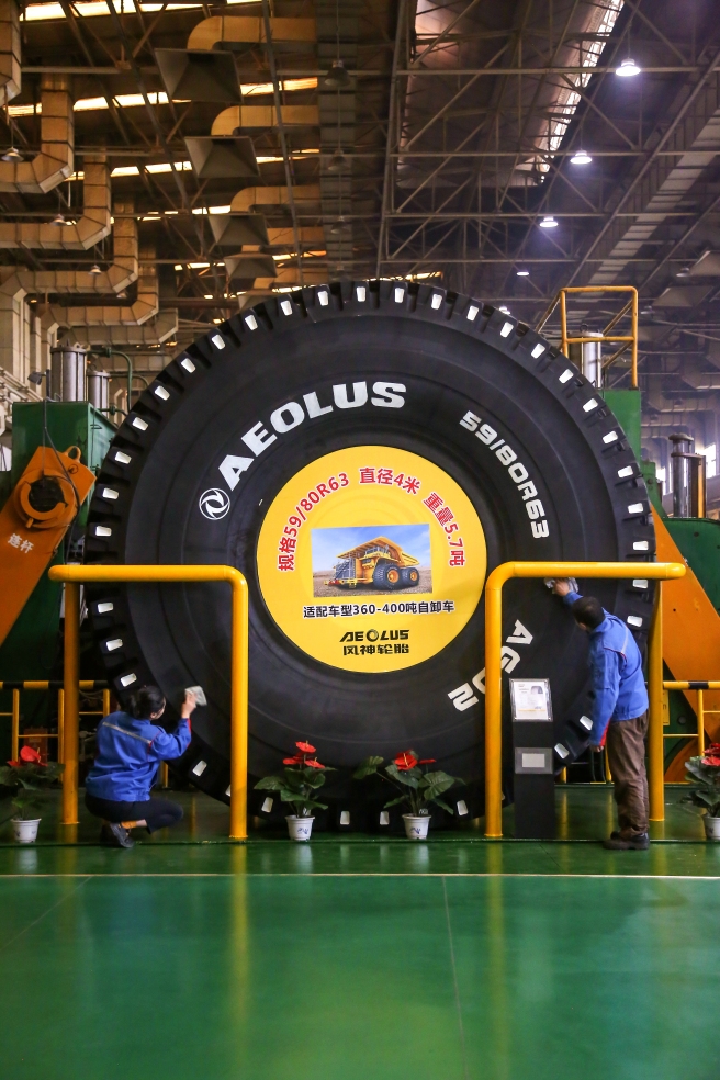 此次成功下線的巨型輪胎由風神輪胎自主研發(fā)生產(chǎn),直徑超過4米,相當于一輛家用小汽車的長度;重量近6噸,相當于3輛家用小汽車的重量,主要用于400噸左右的巨型礦用自卸車。