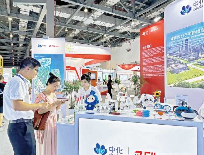 9月5日至8日,第六屆世界綠色發展投資貿易博覽會在江西南昌舉行。這是在我國提出“雙碳”目標后,國內第一個以綠色發展為主題的世界性博覽會。埃肯有機硅攜眾多綠色新技術、新產品集中亮相。期間,中國中化副總經理、黨組成員陽世昊赴埃肯有機硅展臺巡展,詳細了解參展產品技術、市場和應用情況,勉勵埃肯有機硅繼續加強技術攻關和應用開發。